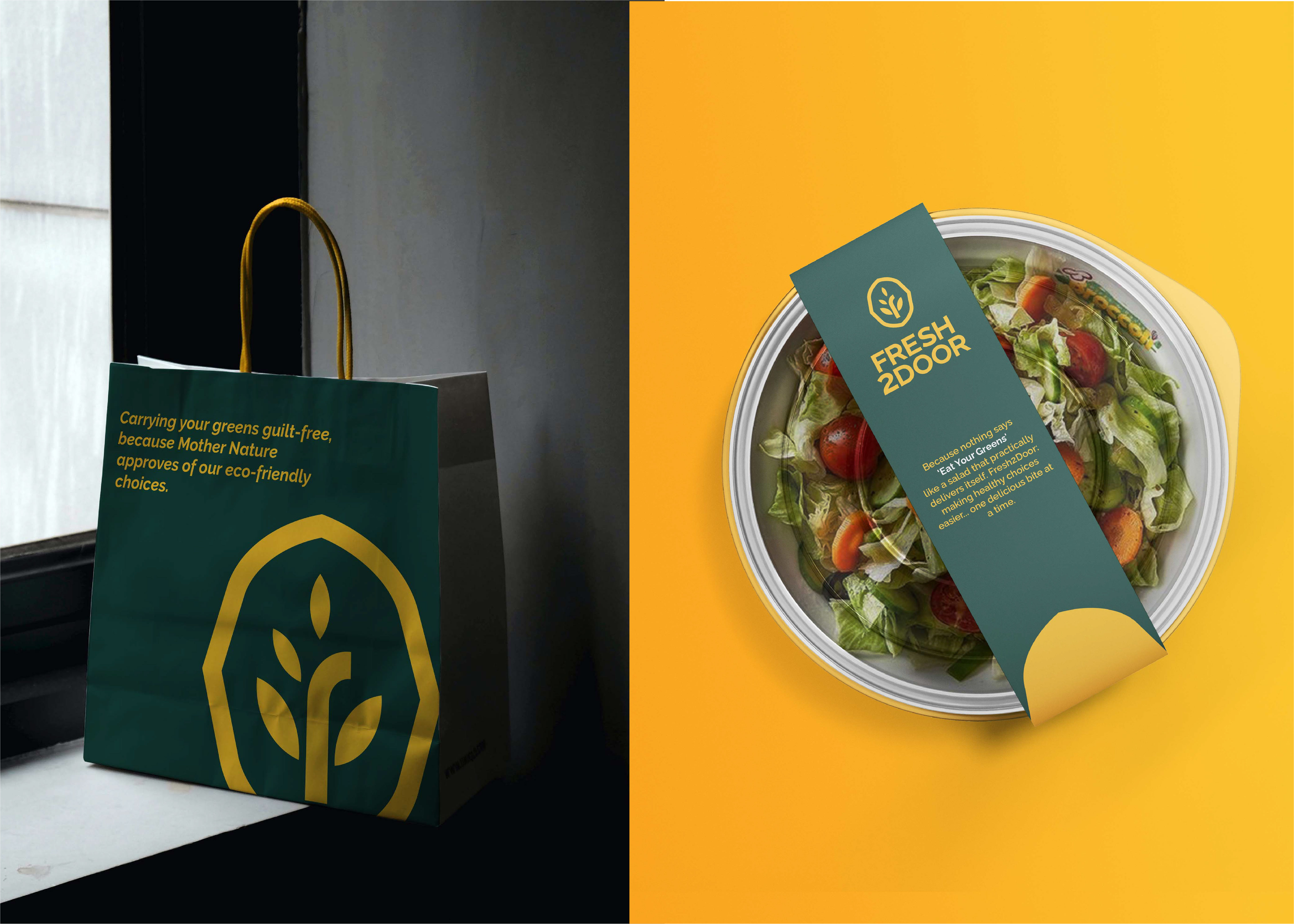 To create a brand identity that cuts through the crowded meal-delivery market with clarity, authenticity, and visual appetite appeal. The goal was to position Fresh2Door not as another "eco-friendly" option, but as the intelligent, trustworthy choice for people who care about what they eat and where it comes from without the pretentiousness.